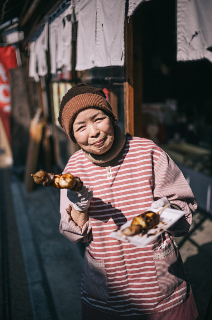 Sayoko is also active in a local Lifestyle Improvement Group (Yokokura Lifestyle Improvement Group). On weekends, she and other members sell traditional foods such as Dengaku, Bara-zushi, and Dango in the Udatsu Townscape, a well-known tourist area in Mima City. The group has been active for 55 years, but its activities have become more difficult in recent years, owing to the aging of its membership.
