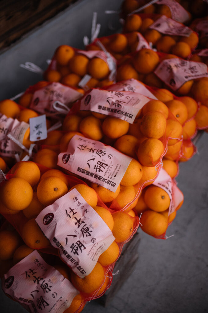ブルーベリーや八朔を育てながら、自ら高松へ出向き、八朔のほか季節の野菜も対面で販売しています。そこには「売る」以上に、人と人が顔を合わせ、自然と会話が生まれる場があります。毎週それを楽しみに訪れる人も多く、顔なじみとのやり取りのなかで、新しいアイデアやつながりが生まれてきました。